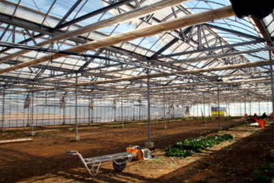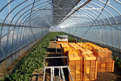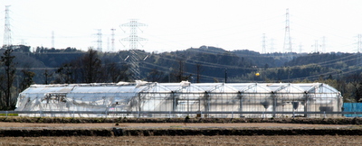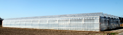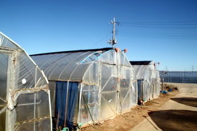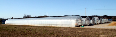 ・ファーム笹山のビニールハウス60棟の内、一番大きなハウスです。 |