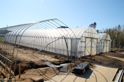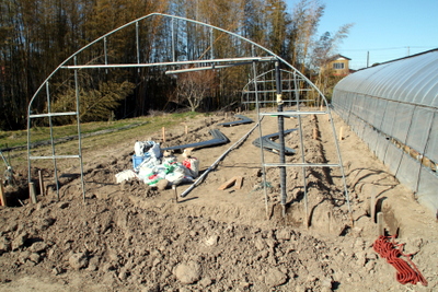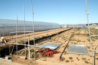 ■倒壊したビニールハウスは、撤去後、再築した。 倒壊後、新築