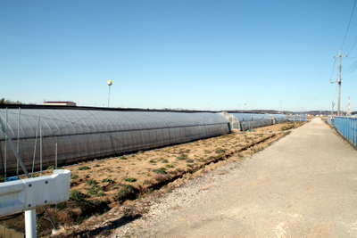 ・ファーム笹山の、野菜栽培ハウスは、袖ケ浦市にあり、木更津市との境界近く。